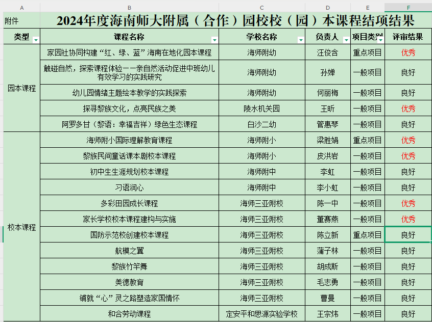 附件:2024年度海南师大附属(合作)园校校(园)本课程结项评审结果