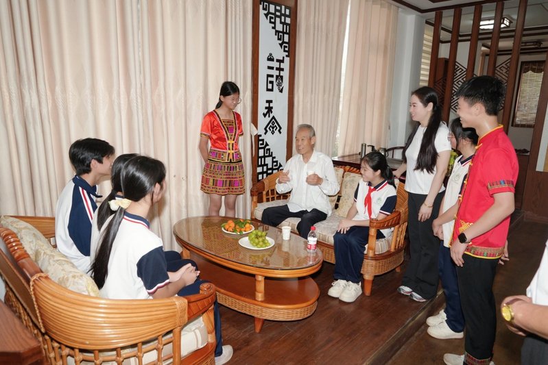 随后,魏书生老师观看了学生特色展演。伴随着欢快的节奏,竹竿舞队员们身姿灵动、步伐轻盈,展现出海师附属三亚学子传承黎族特色文化的活力与朝气;航空航模展演现场,学生们操控着自己设计制作的航模翱翔天际,每一次平稳起飞、精准降落,都彰显着他们的创新思维与实践能力;田园课程展示中,同学们分享着自己种植、观察、收获的成果,传递着热爱自然、崇尚劳动的美好品质。这正是魏老师倡导的“读书是学习,实践是更重要的学习”这一教育理念的生动践行。